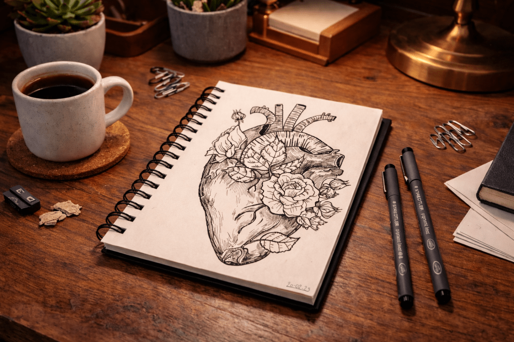 où je partage ce qui est en train de naître : textes en cours, images, idées griffonnées, projets qui avancent, parfois qui doutent.