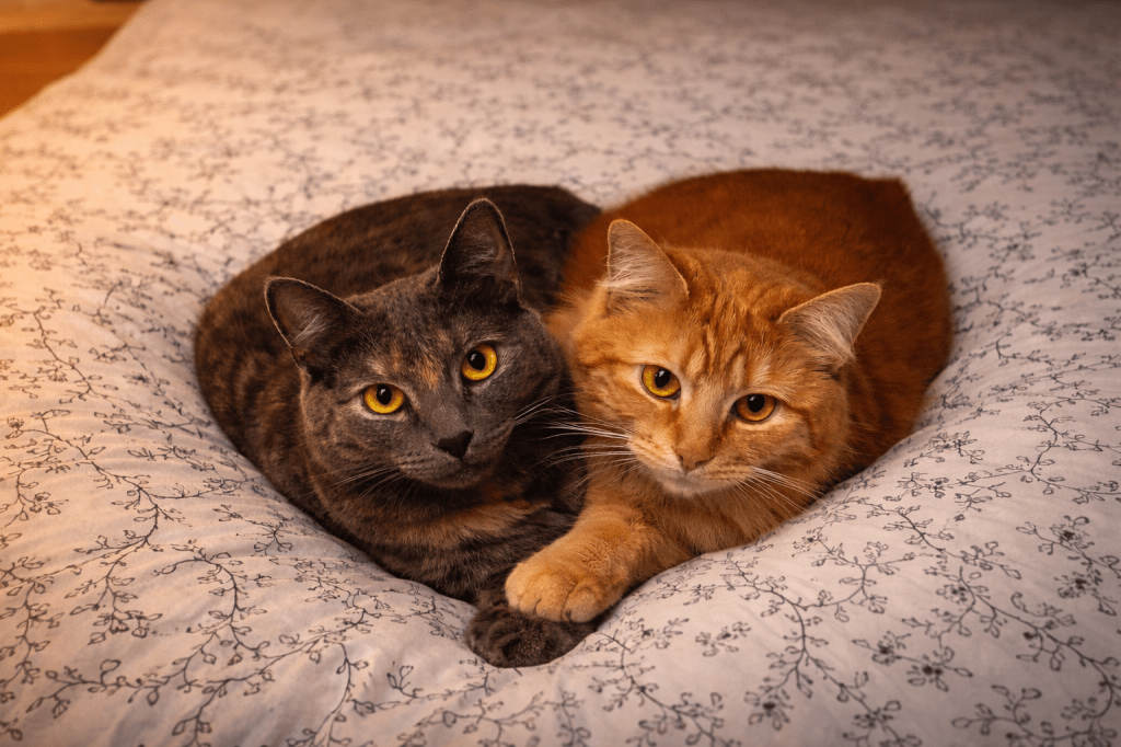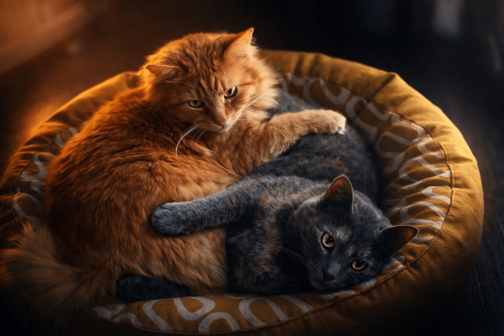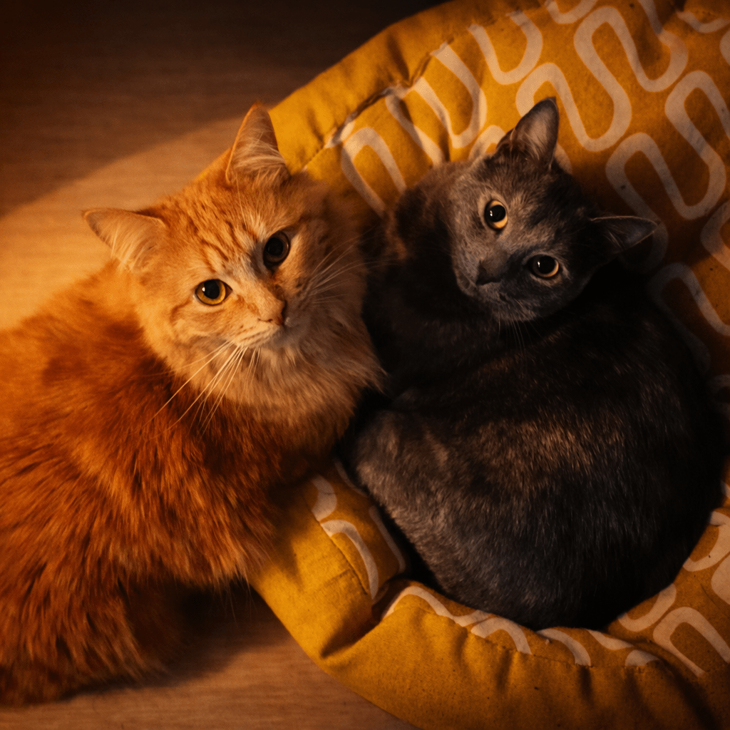 À la maison, il y a deux présences félines qui rythment les journées,